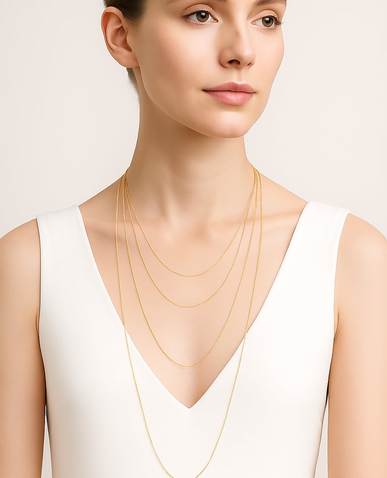 Descubra la medida exacta para su brazalete, collar o anillo con la elegante guía de tallas de Genov & Co.