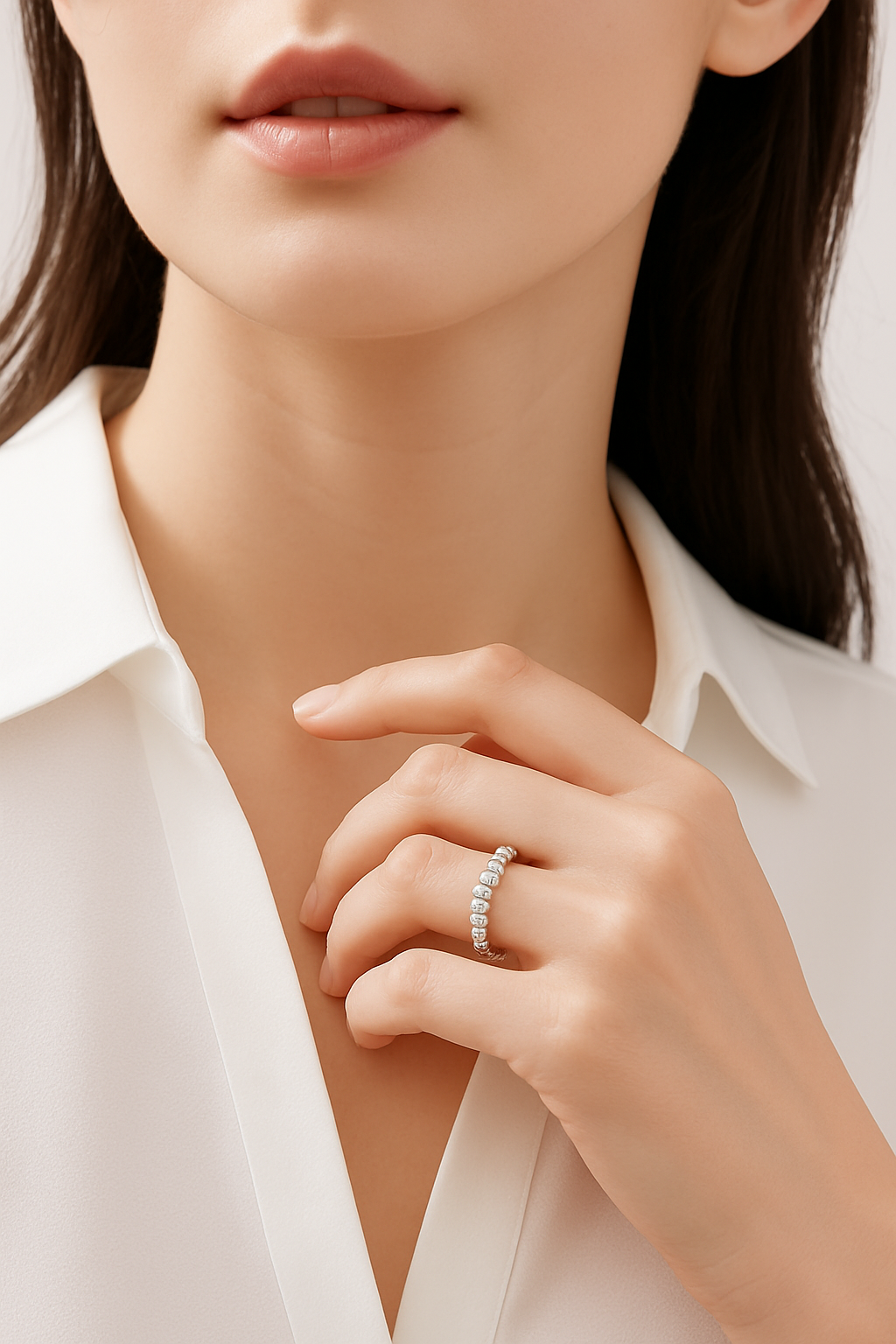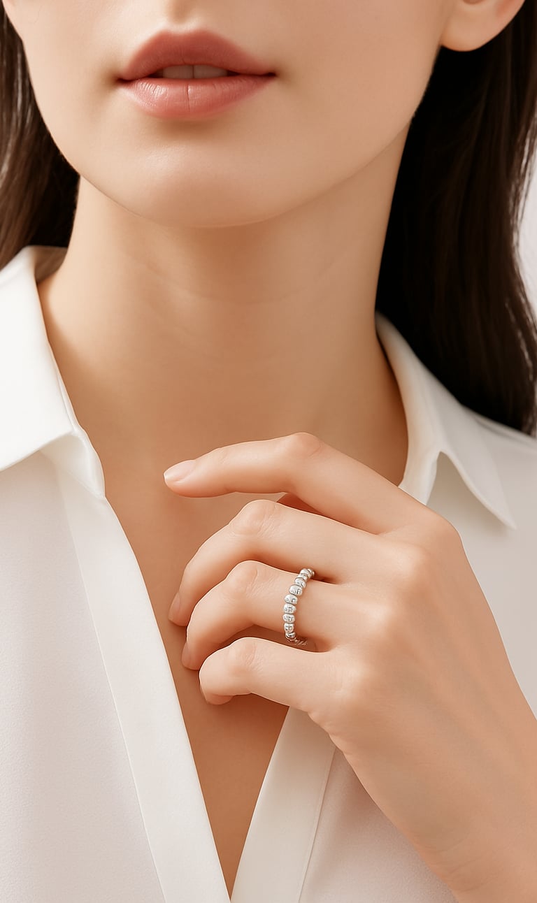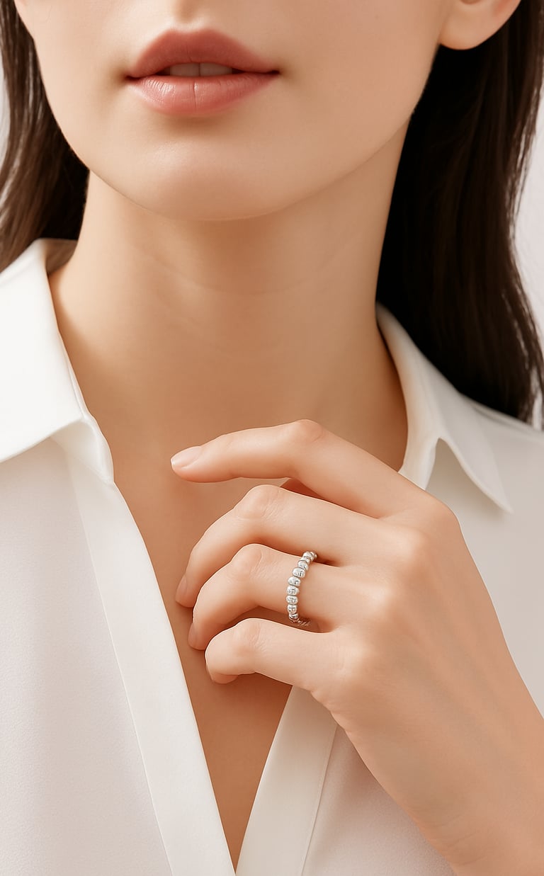 Si desea combinar varios, considere la posición específica de cada uno al medir. Marque el punto en el que ambos extremos se cruzan.Coloque el cordón o la tira sobre una superficie plana y mida la longitud hasta la marca con una regla. Luego, compare el resultado con la guía de tallas de anillos de Genov & Co. para encontrar su ajuste ideal.