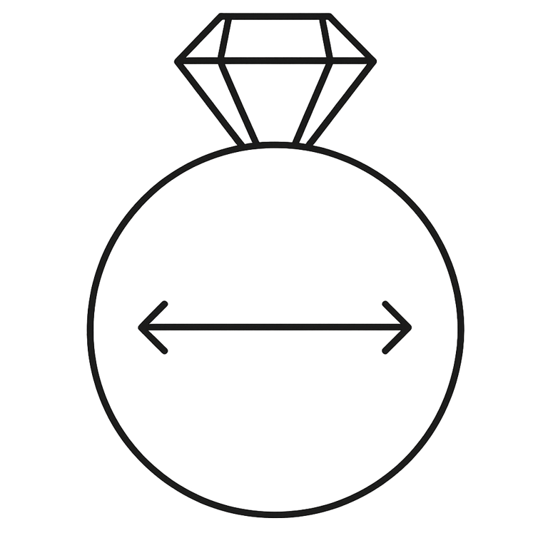 Con una regla o calibrador, mida el diámetro interior del anillo en milímetros (mm), asegurándose de que la medición sea precisa y horizontal.